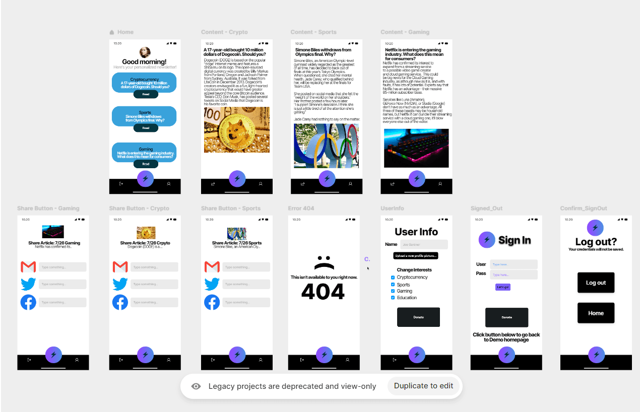 A complex UX mockup made with Framer for IntreSpark, a tiktok-esque news